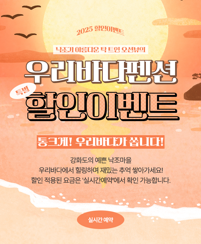 우리바다 펜션에서 시원한 바닷바람을 느끼며 지친 몸과 마음의 피로를 푸시길 바랍니다.